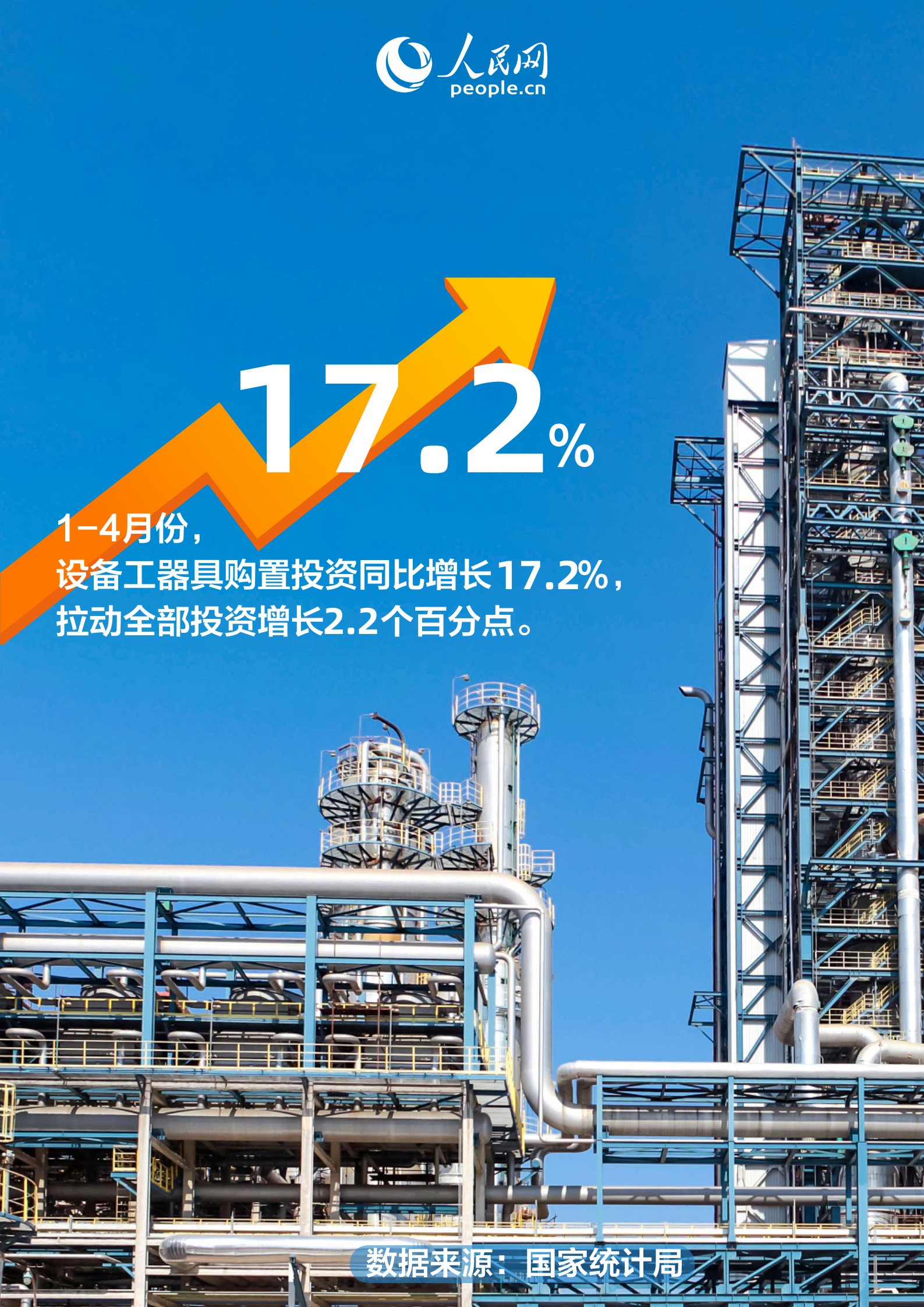 国家统计局数据显示,1-4月份,设备工器具购置投资同比增长17.2%,拉动全部投资增长2.2个百分点。